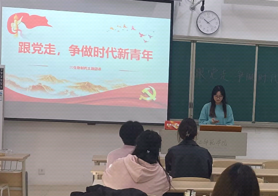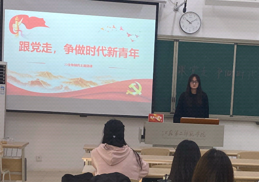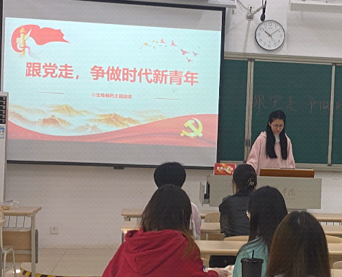 一百年来,共青团在党的领导下,不忘初心、牢记使命,引领一代又一代的青年紧跟党走,为中华民族伟大复兴而贡献力量。我们生逢一个伟大的时代——在党的光辉照耀下的时代,作为时代的新青年,应该不负众望,献出绵薄之力,始终坚持跟党走,争做时代新青年。为了紧跟党的步伐,20生物制药团支部开展了“跟党走,争做时代新青年”主题团课活动,以下是三位优秀共青团干部与优秀共青团员学习本次主题团课后的思想感悟。