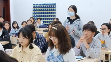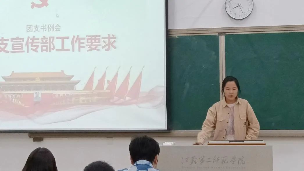 随后,团总支宣传部倪梦茹对主题团课活动的开展情况进行详细讲解。她分别对主题确定、交稿时间及内容要求进行了详细解说,并对团支书后期团课图片的处理进行了培训。