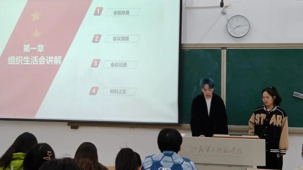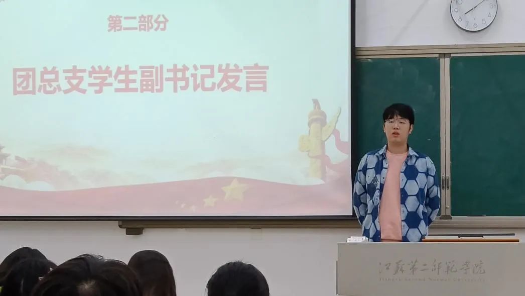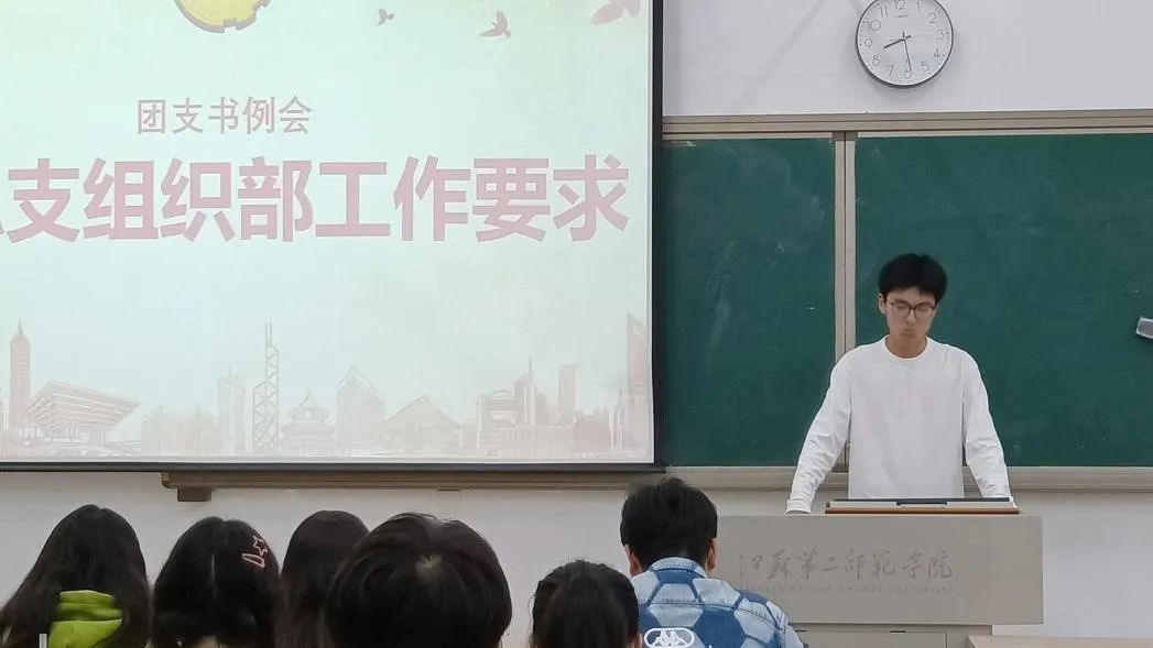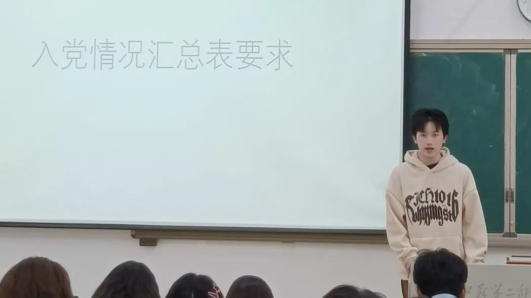 最后,团总支发展部徐毓介绍党员发展的相关工作,就入党申请书的书写要求及提交时间、班内推优活动开展方式及班级同学入党情况汇总表具体要求进行了详细介绍。
