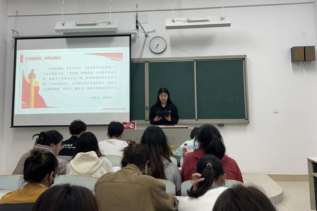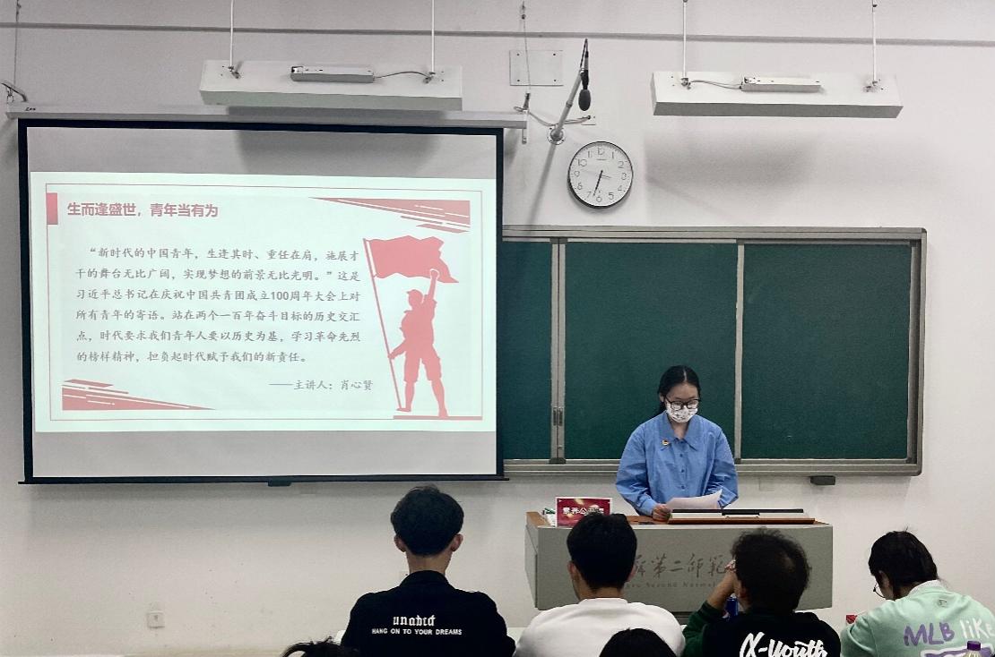 百年赓续奋进,百年凯歌前行。党的二十大报告对全党提出要求:“要把青年工作作为战略性工作来抓,用党的科学理论武装青年,用党的初心使命感召青年。”为让同学们深刻认识到当代青年既生逢盛世,也重任在肩,20生师普本团支部组织开展了“生而逢盛世,青年当有为”的主题团课,以下是三位优秀共青团干部和优秀共青团员学习本次主题团课后的思考与感悟。