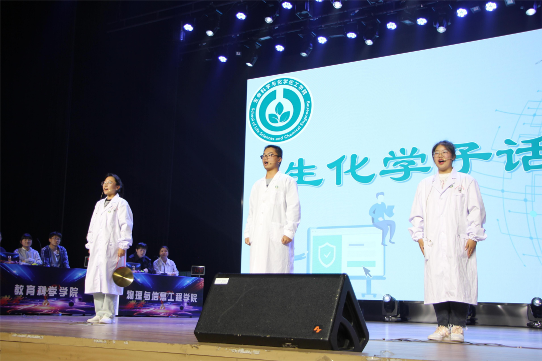 在安全知识竞赛表演中,生化学院的同学们可谓是大展风采。由许家乐、孟心怡、周浩同学表演,时颖老师指导的节目——《生化学子话安全》,以十分形象生动的三句半形式,宣传了许多有价值的防诈骗知识。这种活泼动人的表演形式能够增强同学们的识诈、反诈能力,有利于帮助同学们树立正确的消费观和价值观。