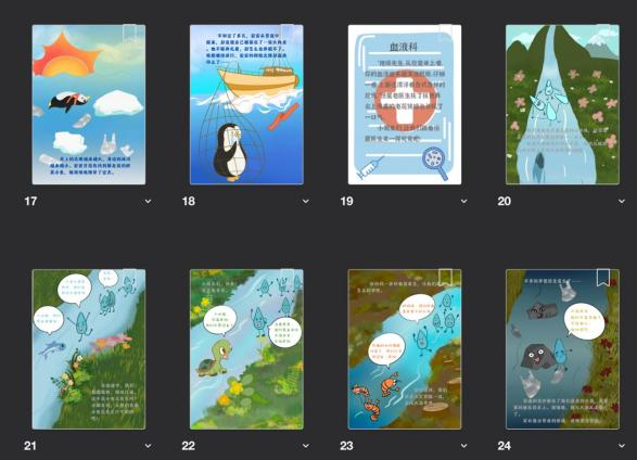 谈及绘本创作时,她说到,“我与另外两位主创成员都没有经过专业的训练,因此要靠自己不断的摸索,当时我们还参考了《科学课程标准》以及苏教版的科学教材以确保绘本没有科学性的错误,恰逢当时转线下课,因此我们白天上课、做实验,晚上开始着手绘本制作,就这样开始了一个学期的多线程工作,好在有志同道合的伙伴,最后我们的绘本也得到了一定的认可。”其绘本自发布后,得到全国青少年生态文明教育中心宣传转载,并获得广东省中小学教师优秀科普作品特等奖、江苏省科普公益作品大赛二等奖。