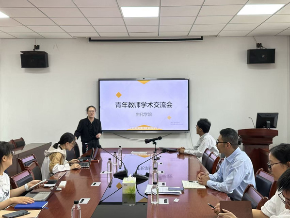 为促进学术交流与合作,助力青年教师科研能力提升,生化学院于10月15日在明理楼1-335会议室成功举办了“2025年青年教师学术交流会”。青年教师张行博士与王萌萌博士分别交流了相关研究成果,学院科研秘书何聪博士主持了本次交流会,全院20余位青年教师代表出席了活动,共同探讨学术前沿问题。