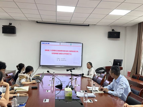 青年教师张行博士作了题为《肿瘤微环境响应型纳米材料的制备及其脑胶质瘤治疗研究》的学术报告。报告深入探讨了当前脑胶质瘤治疗的困境和方向,并结合自身研究经验,分享了在脑胶质瘤治疗中创新思路。