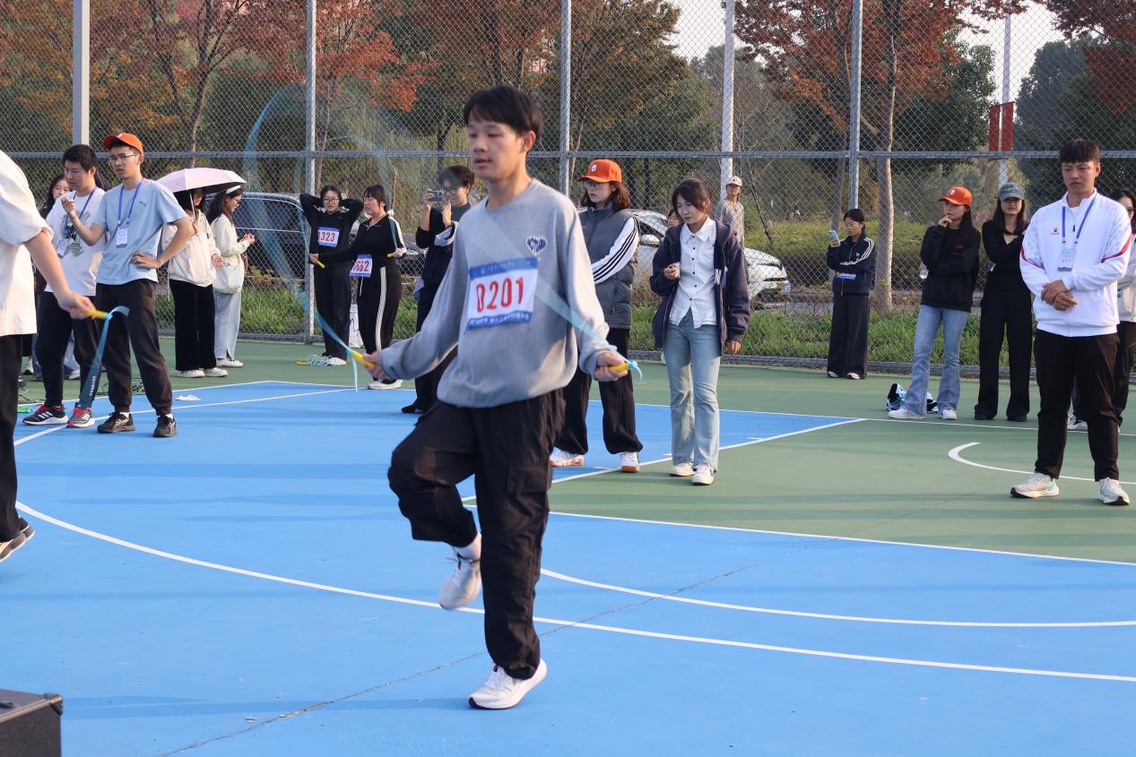 绳影翻飞如暴风骤雨!我院健儿疾跳如电,每一次腾跃都踏出沸腾的节奏,努力实现自我突破!