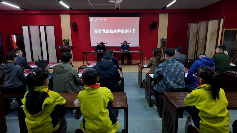 在“汇聚合力、同心共建”阶段,赵校长致辞,她回顾了学校办学积淀与师范教育使命,强调此次结对共建是深化校地合作、推进教育一体化的重要举措,学校将与溧水区在师资共育、课程共建、实践共研等方面进一步开展深度合作。张局长对校地党建联建工作取得的系列成效予以充分肯定,并期待双方以党建为引领,携手打造校地协同的育人体系。双方代表签署党建结对共建协议书,与会师生共同参观中华优秀传统文化传承基地并签署长卷。