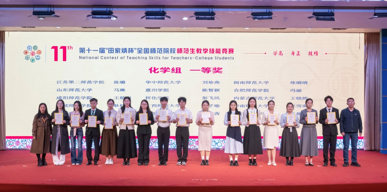 在本届竞赛的璀璨舞台上,生化学院学子大放异彩,尽显非凡实力。化学(定向)专业的陈璐同学,于强手如林的激烈角逐中脱颖而出,凭借着条理清晰的教学思路、绘声绘色的课堂表达以及巧妙灵活的互动设计,一举斩获化学组(高中)一等奖第一名,这是继2024年吴璎珞同学夺冠后,学院再次摘得桂冠。化学专业的孙烨澜同学荣获科学组(初中化学)二等奖,生物科学专业的王俞心同学获得生物组(高中)三等奖,她们的成绩,有力彰显了学院师范生培养的卓越成效与高水准。