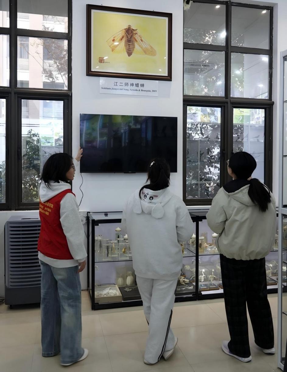 活动现场,同学们怀着求知的热情有序参观馆内藏品。在专业讲解员的细致引导下,大家近距离观察昆虫、鸟类、植物等各类标本,系统了解标本背后蕴含的物种特性、生态价值与科研意义,深入领会生物多样性保护的重要性。形态各异的蝴蝶标本展翅欲飞,栩栩如生的鸟类标本定格灵动瞬间,品类丰富的植物标本展现生命百态,一幅幅鲜活的自然画卷,让同学们沉浸式感受大自然的神奇瑰丽,极大激发了探索自然的兴趣。